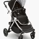 Our stroller can be folded with one hand—with or without the seat attached—and it automatically locks and stands upright when folded. The dual frame and seat suspension work together for smoother strolling and a more stable ride, and the handlebar rotates to accommodate parents of different heights.